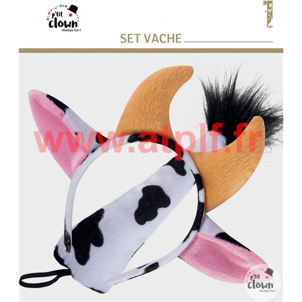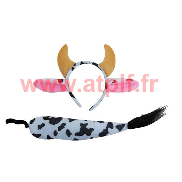 Set de deguisement Vache 2 pièces (Serre tête cornes et queue)